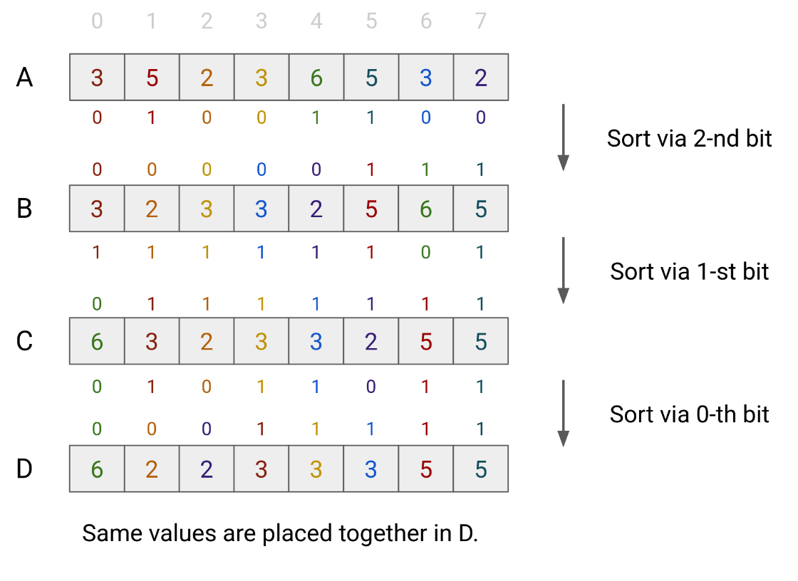 Like Radix Sort, but sort via the binary digit and from MSB to LSB.