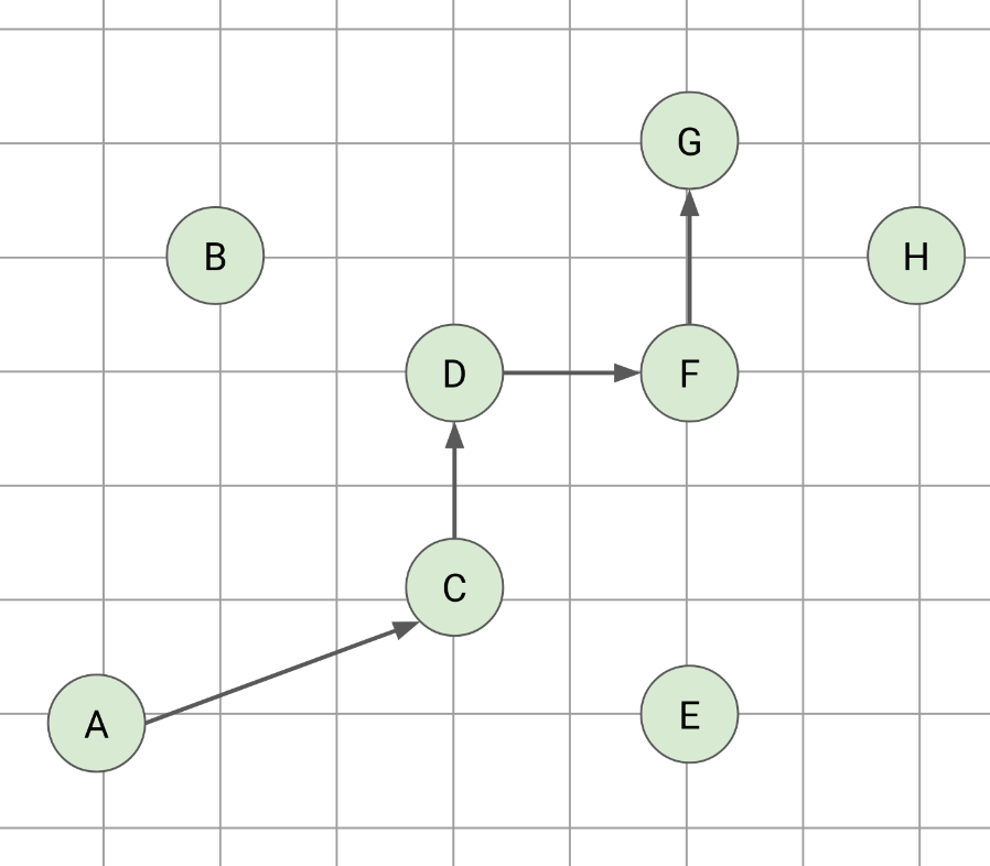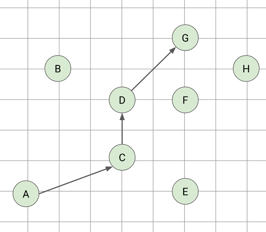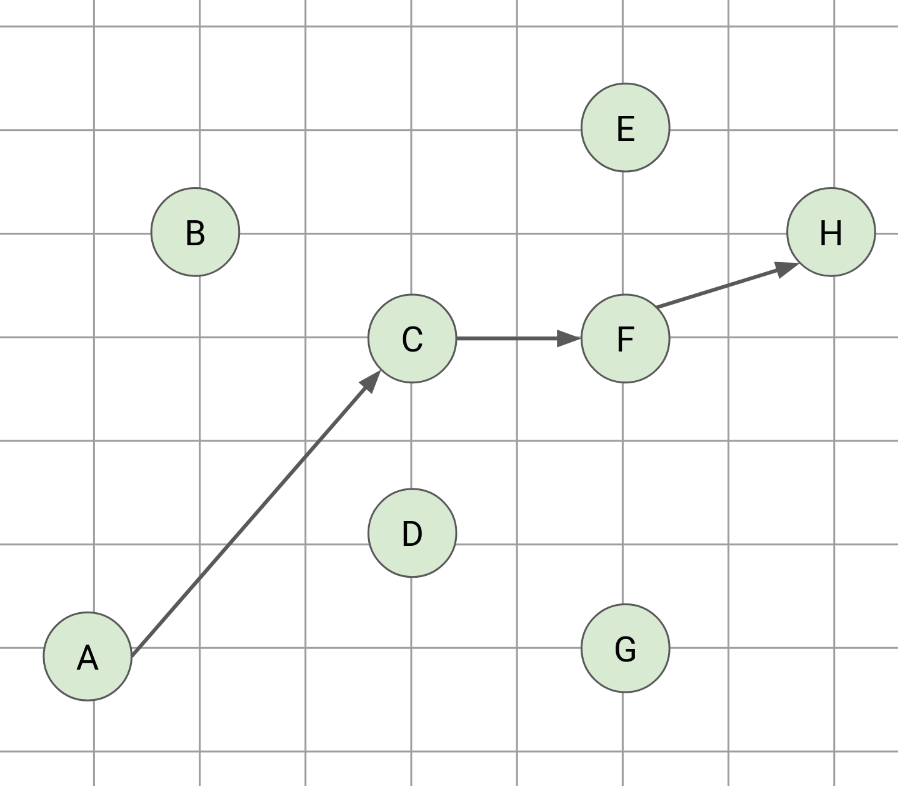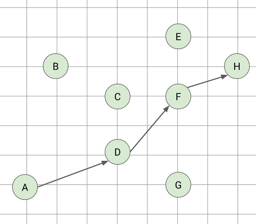 From the geometry viewpoint, we are inspecting these 2D points from left to right while finding the chains that are increasing in the y-axis, that is, the longest increasing subsequence of the y.